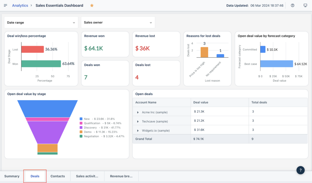 Freshsales is for teams that want to do the actual sales work inside the CRM, instead of bouncing between separate tools for calls, emails, notes, and follow-ups. Because communication is built in, it is easier to track every conversation in one place and keep the full context on a deal. The automation is also practical for growing teams, like setting reminders, assigning tasks, and nudging reps when a lead goes cold.